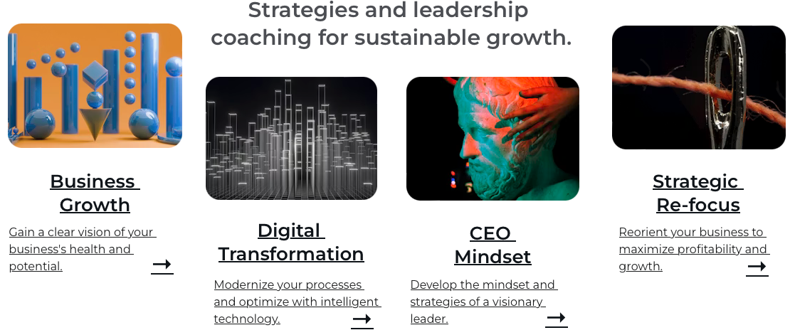 We partner with small business owners and managers throughout the United States to transform their operations through proven methodologies in digital innovation and executive leadership development. Our comprehensive approach moves leaders beyond day-to-day operations into visionary strategic thinking, process optimization, and market dominance.
